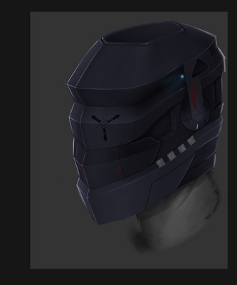 Had to get this out of my system...Keeping with Argus [or perhaps in this case, βrgus hinthint] tradition of weird head mounted knife storage, the sheath attaches to a sliding mount at the end of a short servoarm. Slides back for stowage, sliding forward is linked to arm motion.