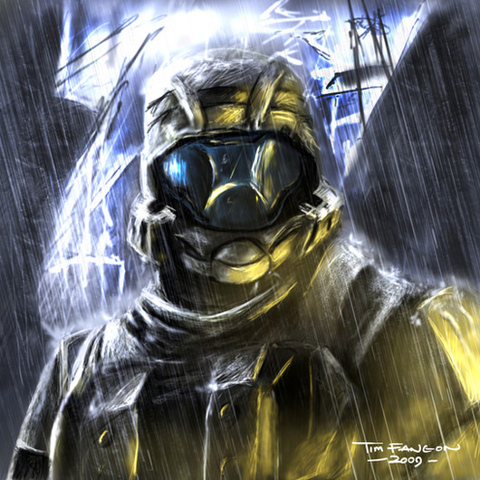 I really enjoy this style of digital painting, it's gritty yet it looks detailed all at the same time. Fantastic job.