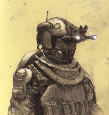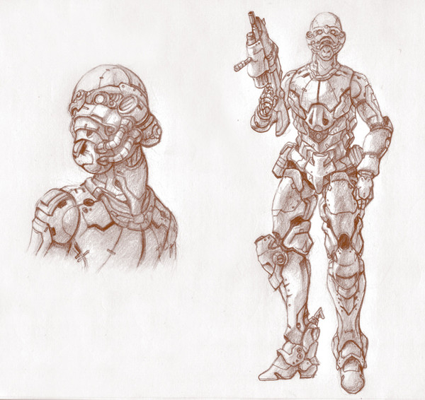 Wicked idea! I love the thought behind the armor design. Major props. Is this just pencil sketching with photoshop shading?
