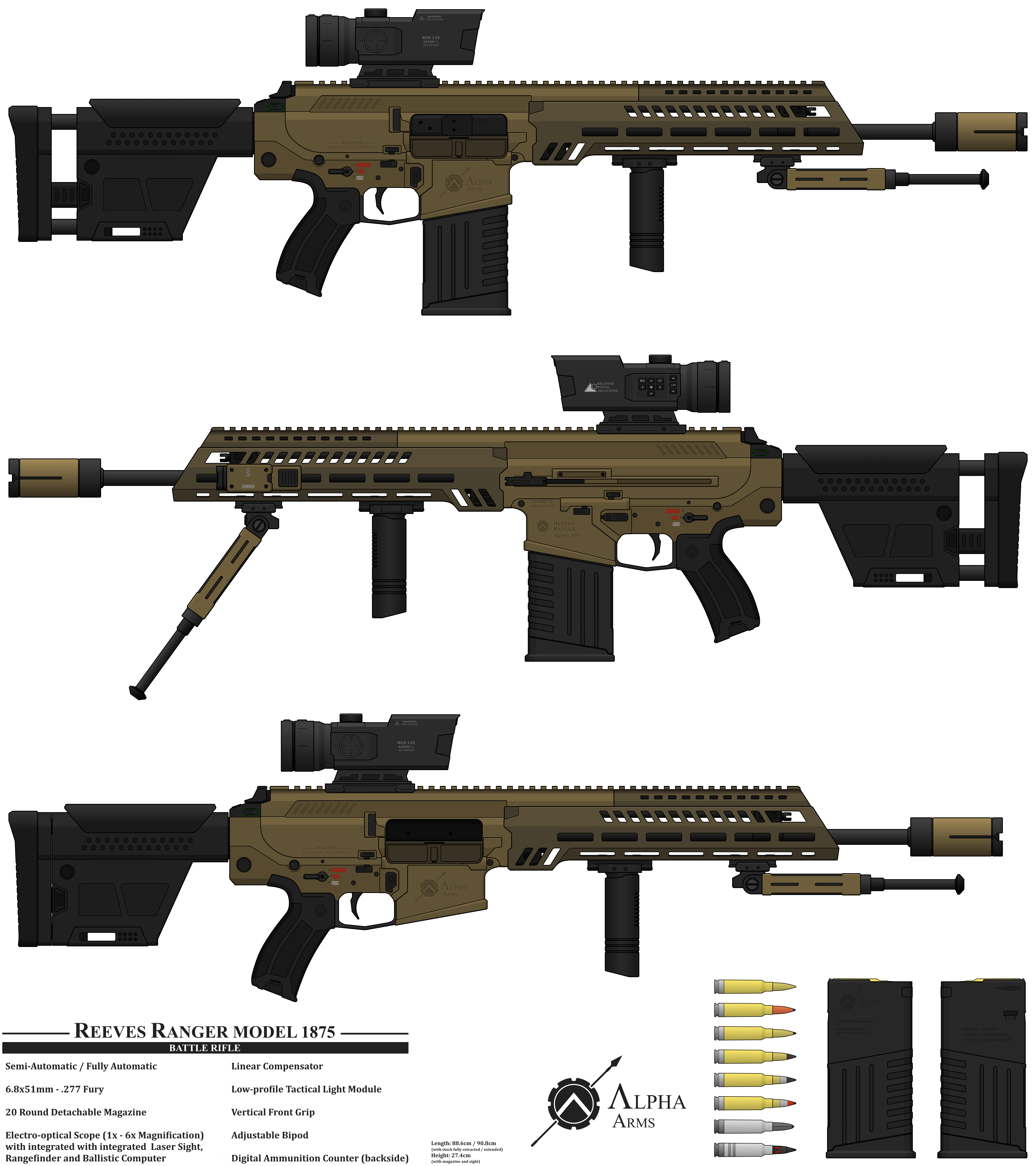 The Reeves Ranger Model 1875 is a relatively modern and extremely rugged battle rifle and/or DMR, depending on configuration and chambering.