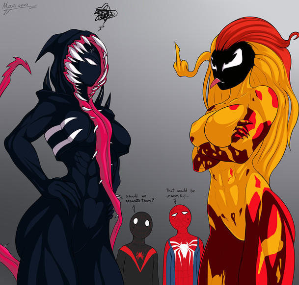 #commission #digitalart #fanart #femdom #marvelcharacters #musclegirl #romance #shevenom #gwenstacy #sizedifference #spidermanmarvel #spidergwen #milesmorales #gwenom