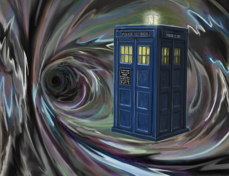 The Doctor going through another vortex, possibly going to fight some Daleks, or maybe even to find another companion, who knows when comes to him.And yes, the tardis is a little off.