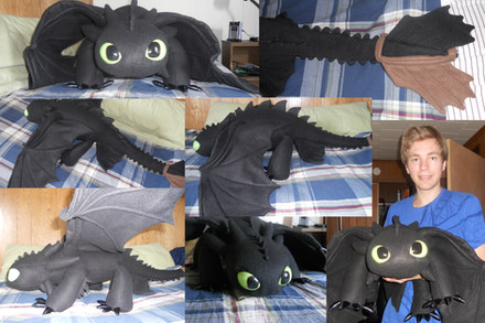 My next plushy is done. A lovly little night fury. My very own Toothless.He is made of minky, except for his claws that are made of nici.