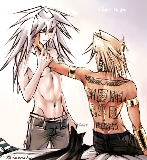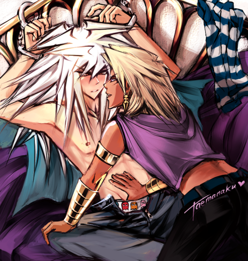 Also: This is effing hawt. Mariku's expression is... yes. *nods and doesn't want to get her board of censors* And Bakura's "I-so-pretend-to-be-pissed"-face made me just grin! xD