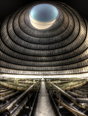 Steam inlet in the center of one of the cooling towers at Thorpe Marsh power station (de-commissioned) near Doncaster, South Yorkshire, England.Related content