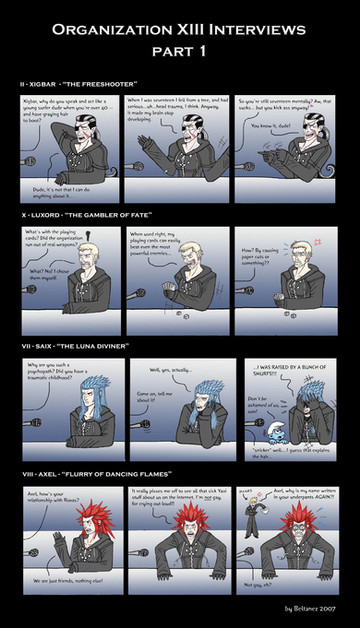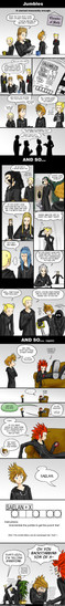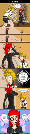 Yay for straight Roxas! But even his loving NaminΓ© would be weird... I mean, they were both made from Sora's body! That makes them practically twins! Anyway, love the panel with Marluxia and Axel calling dibs on Roxas. Great job!
