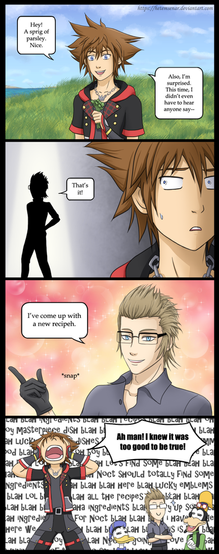 XDDD! You do not know how hard I laughed when I read "And DEFINTELY not Sora" XDD And I was laughing pretty hard to begin with! A++! This is so my favorite comic on DA! *Resumes laughing*