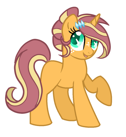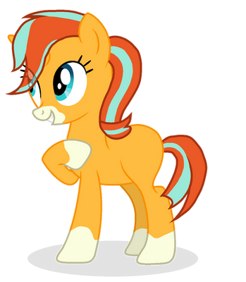 Daisy May is a rather demure filly with a silent disposition, much like her uncle, though this quiet attitude doesn't match her physical strength. She's not as clever as her father, Flim, but she's plenty smart. Daisy isn't as stubborn as her mother, Applejack, but she's not a pushover by any means. Her dream is not to stay on the farm, like one might expect, but she actually wants to join the royal guard, which would be quite a feat for a small pony such as herself.Base by