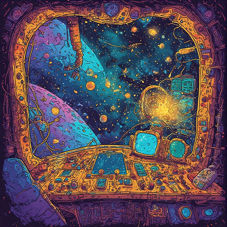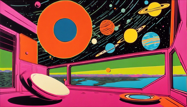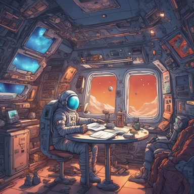 This is a concept of a space age RV in a 1950s futurist style. This view is the home/office mode.This image was generated by Midjourney AI. #midjourney #midjourneyart