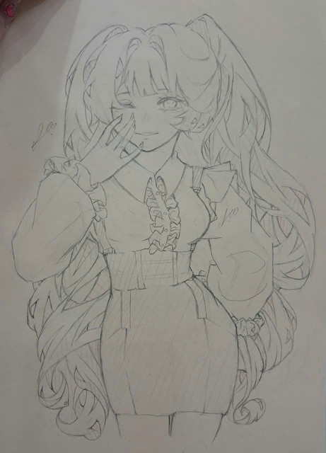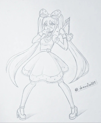 #animedrawing #animegirl #confident #cutegirl #hairpin #highheels #locks #miniskirt #sketchbook #sketchdrawing #smile #traditionaldrawing #longhairgirl #animegirlcute