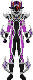 Here's another villain! This time from Hyakujuu Sentai Gaoranger. This is Rouki/Loki and in PR, Zen Aku. I barely remember Wild Force and haven't seen much beyond scattered clips of Gaoranger, but this design is definitely the best villain suit of that series. Rouki/Zen Aku both were villains born from an ancient mask that the Silver Ranger wore to defeat the orgs long ago. The mask took over and the villain was born.The design is awesome, very dark and evil and matches the wolf theme. The dark blue bits look reminiscent of night skies and the few pieces of yellow are the moon/stars. It's a great color scheme that I'm very happy to play with.