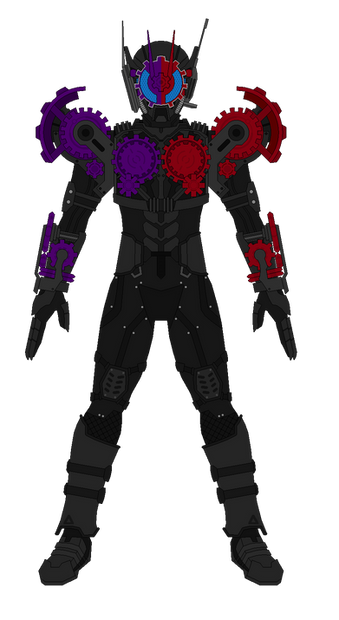 Here's a design from Kamen Rider Drive I didn't expect/want to make until very recently. With the reveal of the rider form Chou Deadheat using Machine/Mashin Chaser's design, I figured that basically stated this was a rider design without being classified as a Kamen Rider.Machine Chaser is Chase's second transformed form (1st being Proto Drive and 3rd being Kamen Rider Chaser) and his only evil/antagonistic form. The Roimudes refer to Machine Chaser as the Grim Reaper and in the early part of Drive, Machine Chaser comes into conflict with our heroes multiple times. His identity and redemption is easily the biggest plot point of the first half-ish of Drive. The Break Gunner weapon is off to the right as well since I've already made it. No, I do not have any plans nor desires whatsoever to make his "tune" weapons.