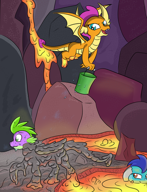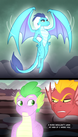 Ember: "The point is that I'm here and we can get on with this." The dragon lord sheepishly notes and nervously enters the lava pool furthest from Spike.