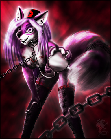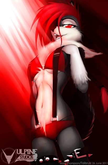 hehe, she looks like my type of... *whispers to guy sitting next to me: "Is she a human or an animal?" "Animal I guess." "Okay thanks"* animal. Her hair might just be wild enough to make Johnny Napalm from guitar hero faint(which might also be helped because shes so beautiful). It reminds me of my dog Cassie, who also has a short snout, dark, dark grey fur and a fluffy, sweeping tail. For me definatly one of your best. Although, for those who are looking for a sexual thrill, I'm afriad they wont find much in this picture. It seems that you tried to make Roxanna sexy, but also wanted to keep the men who look at this pic from jump out of their computer chairs and get funny with themselves on the floor. Good work my friend.