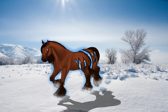 ;A; You have snow?? Oh, I wish it snowed here...awesome pic! Love horseys! Good horsey, you keep prancing...:3