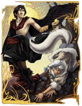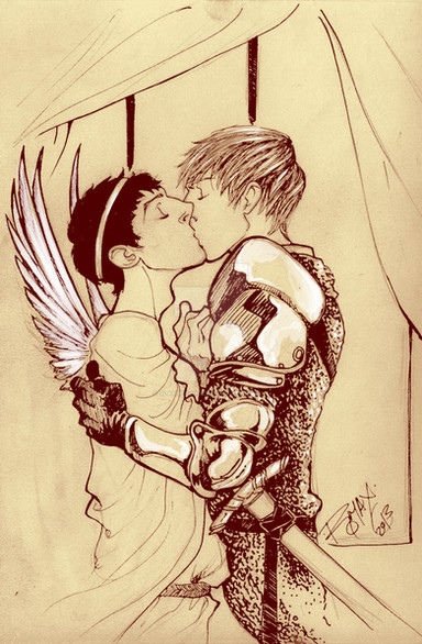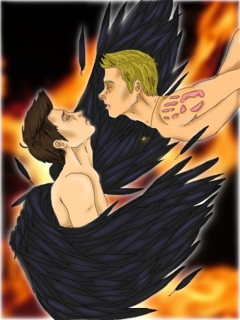 And then, this is a fanart of a fan fiction of a fanart of a movie based on comics........A gift for the lovely Manic Intent on her work Catechism (read over on AO3: [link] ) I know she describes Steve's wings as brown, but the blue just worked so much better.....