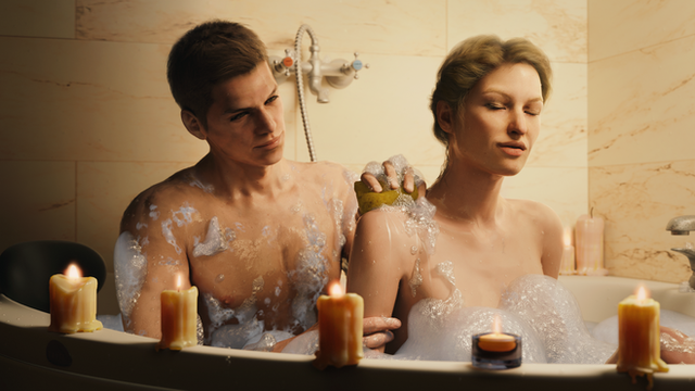 The imagery in the background is just as compelling as the scene playing out. Wonderful use of symbolism and excellent job on the photomanipulation.