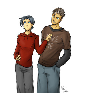 Possibly two main characters for two different stories. I decided to draw them together!These two characters are mine, Kensou and Zoe respectively.