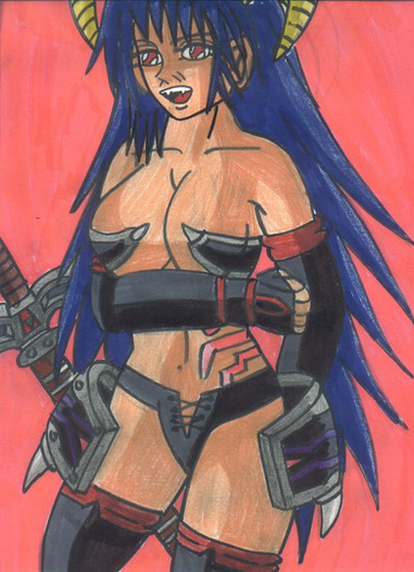 ya veo si lleva poca armadura XDD pero en fin, es lo k le pega a las chicas demonio xDDD espada grande y pokita ropa >_> XD