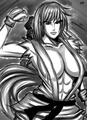 When you think about a female version of Ryu, I'm sure most of people take Sakura as an example, but I always go for the bizarre path so that's why we have here another SF genderbender session xDDDDFor the female version of Ryu I chose a long black hair because short looked kinda weird xDD and dressed her in a similar style of the Akuma version I did some time ago^^
