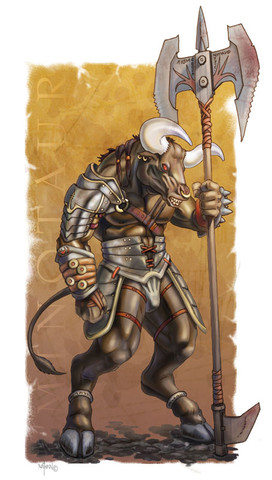 Wow, that's one of the most bitching minotaurs I've ever seen. I always love seening a minotaur that looks the way a minotaur should look. Any other remarks on it? Inspirations? Is the back handle of his axe colored?