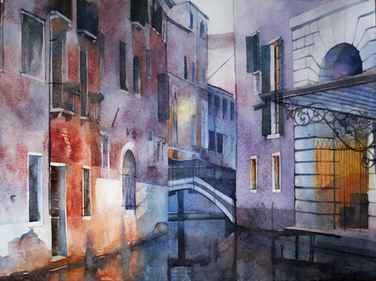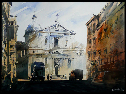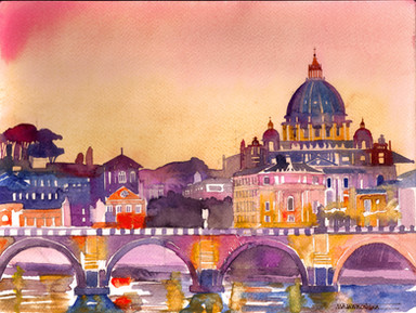 This time watercolor from Rome, Italy. This is the view on St. Peter's Basilica and the Ponte Sant'Angelo during the sunset. I totally made it up, because I painted it from b&w postcard I bought in RomeRelated content