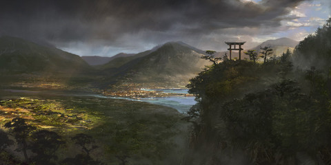 Wonderful lighting, I like the background effect and the shadowing, very much oriental but with a nice old world style.
