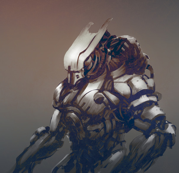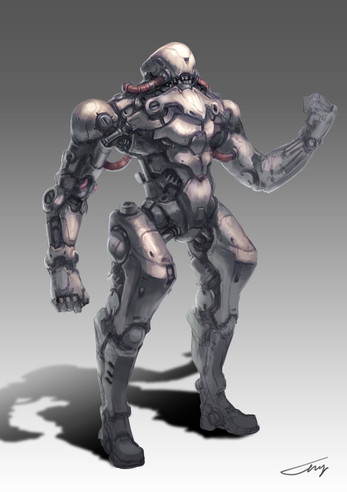 That's incredible! I like the planes of flat color and the use of highlights. Any plans on rendering out the arm, or are you leaving it loose? Either way it's killer.