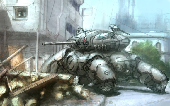 Sexy. I love the amalgamation of modern-era tanks and mechs. Reminds me of what the Russian robot spiders from Command & Conquer: Red Alert would look like! (Gee, that's a reference.)