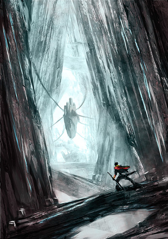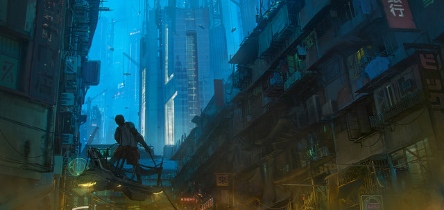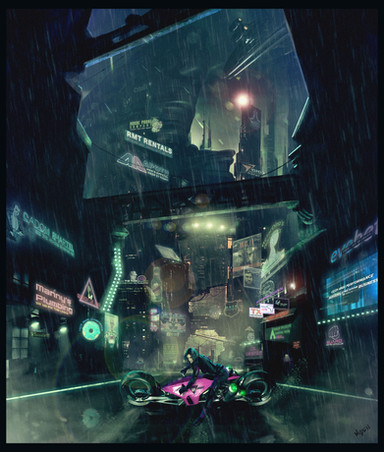 The perspective on the character seems to be fighting with the perspective on the vehicle but this piece still kicks ass. Excellent work man.