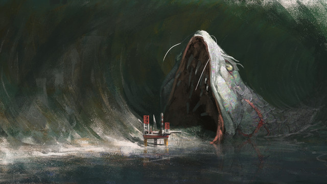 Now, that is a brave fisherman! Awesome artwork!