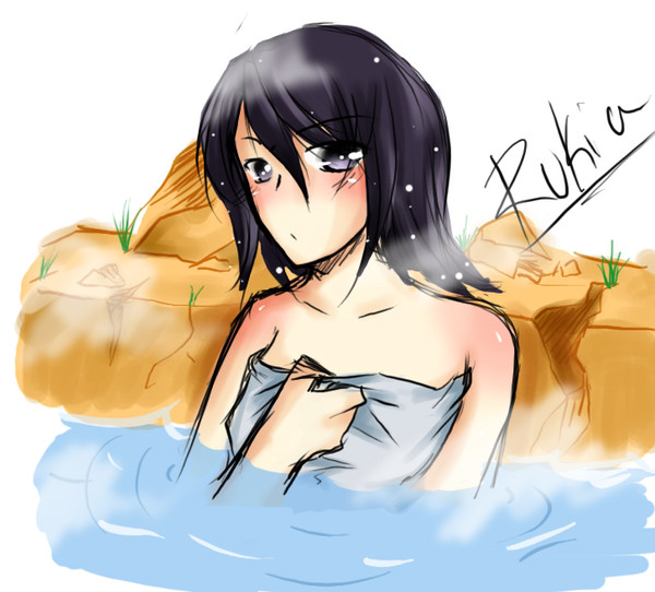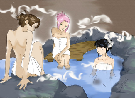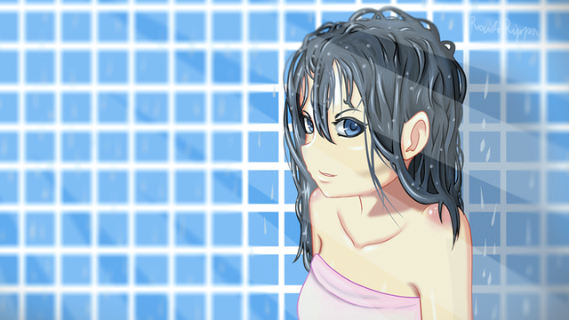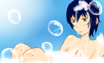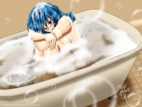 I think this turned out amazingly well! The bubbles/steam cover her up and there's nothing risque about it at all. The entire peace is rather excellent because of that addition and of her expression. It's definitely more "artful" to me than it is a mere piece of fanservice.
