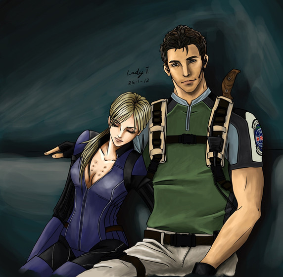 Excellently done, and I love the expressions! The way Jill is gripping the back of his coat gives me the impression that she's about to throw him through a wall and he's going to have second thoughts about shooting her up with the Progenitor virus.