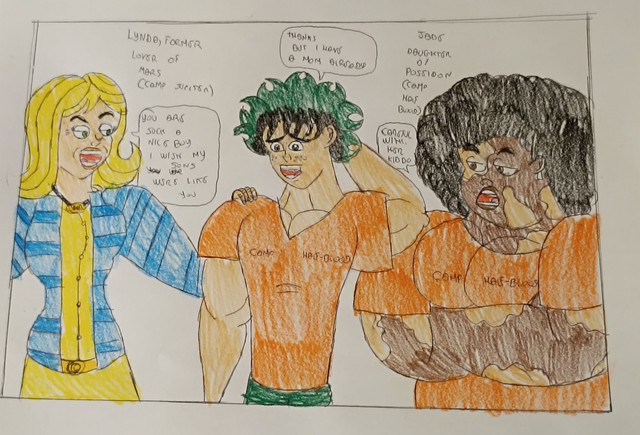 To start this editing I contrasted the image until the lights were almost harsh. Then I added a light yellow color. Next I used an airbrush to pink the skin. I brightened the hair with layers of pink and red and even a few maroon-tinted shades. I airbrush a grey-ish pink onto the eyes to lighten those up. I gave the dress a blue tint in the light and blurred the background just a tad. Then I went back and lightened the contrasting and darkened the picture just a tad. And that was it for this one.