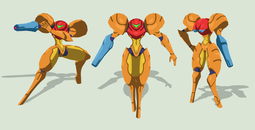 When I was gathering references for painting textures, I found it very interesting how different game studios interpreted Samus' design and made minor adjustments to it, but had her silhouette remain the same throughout.