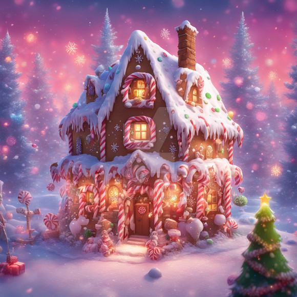 #christmas #ai #dreamup #digitalart #magic #forest #gingerbreadhouse #holiday #peppermint #snow #winter #ai_art