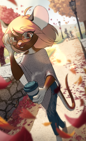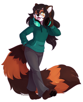 A wonderful slice-of-life moment. I like her bushy hair/tail and her dressed-down attire.