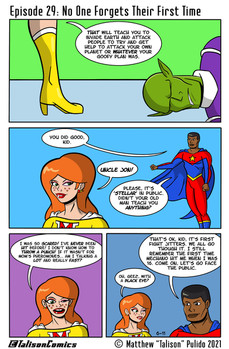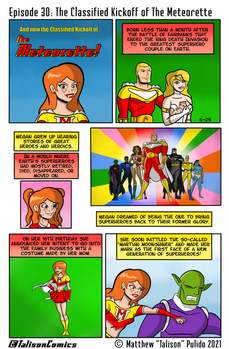 While all the character's have names and backgrounds I haven't really come up with a name for the comic as a whole or the teams. The teens all basically follow Meteorette, and I have been using "Meteorette's Teenage Alliance" as a placeholder name. The adult team that came before them was called "The Hero's Gathering," again, as a placeholder name at least for now.