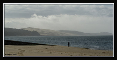 "Another Place" is Anthony Gormley's art installation on Crosby beach near Liverpool. It consists of 100 cast-iron, life-size figures spread out along three kilometers of the foreshore, stretching almost one kilometre out to sea. Each figure weighing 650 kilos - are made from casts of the artist's own body and are shown at different stages of rising out of the sand, all of them looking out to sea, staring at the horizon in silent expectation. Very surreal.Related content