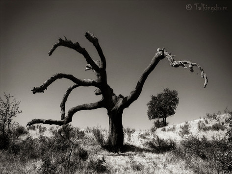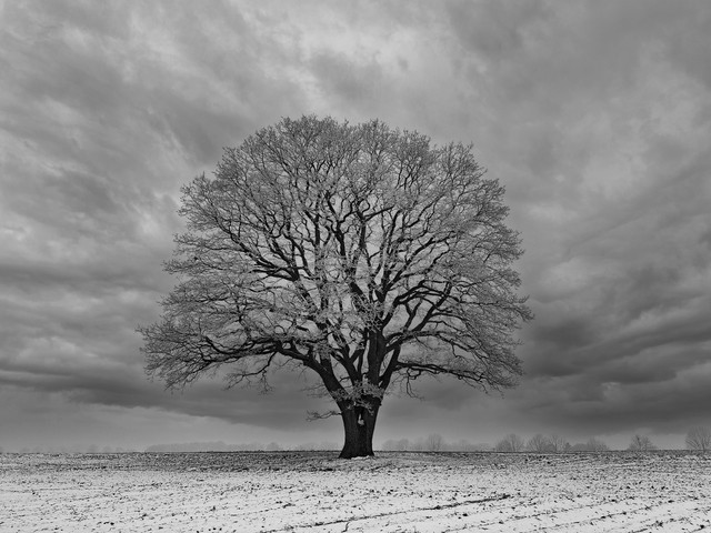 To me it's as if the tree is climbing out of the snow and reaching for the heavens.