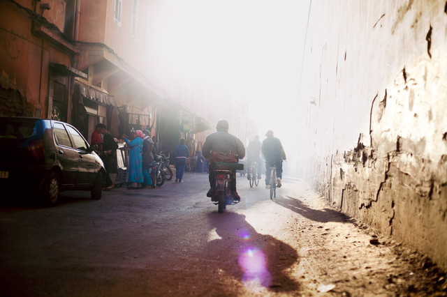 You truly are a master of light! The beams of sunlight and the glow of the motorbike lights against the gloom of the souk make a truly impressive image.