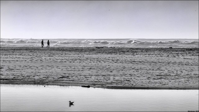 I like this image. The people are just far enough way to be nothing but a silhouette and it makes the ocean look so mighty.