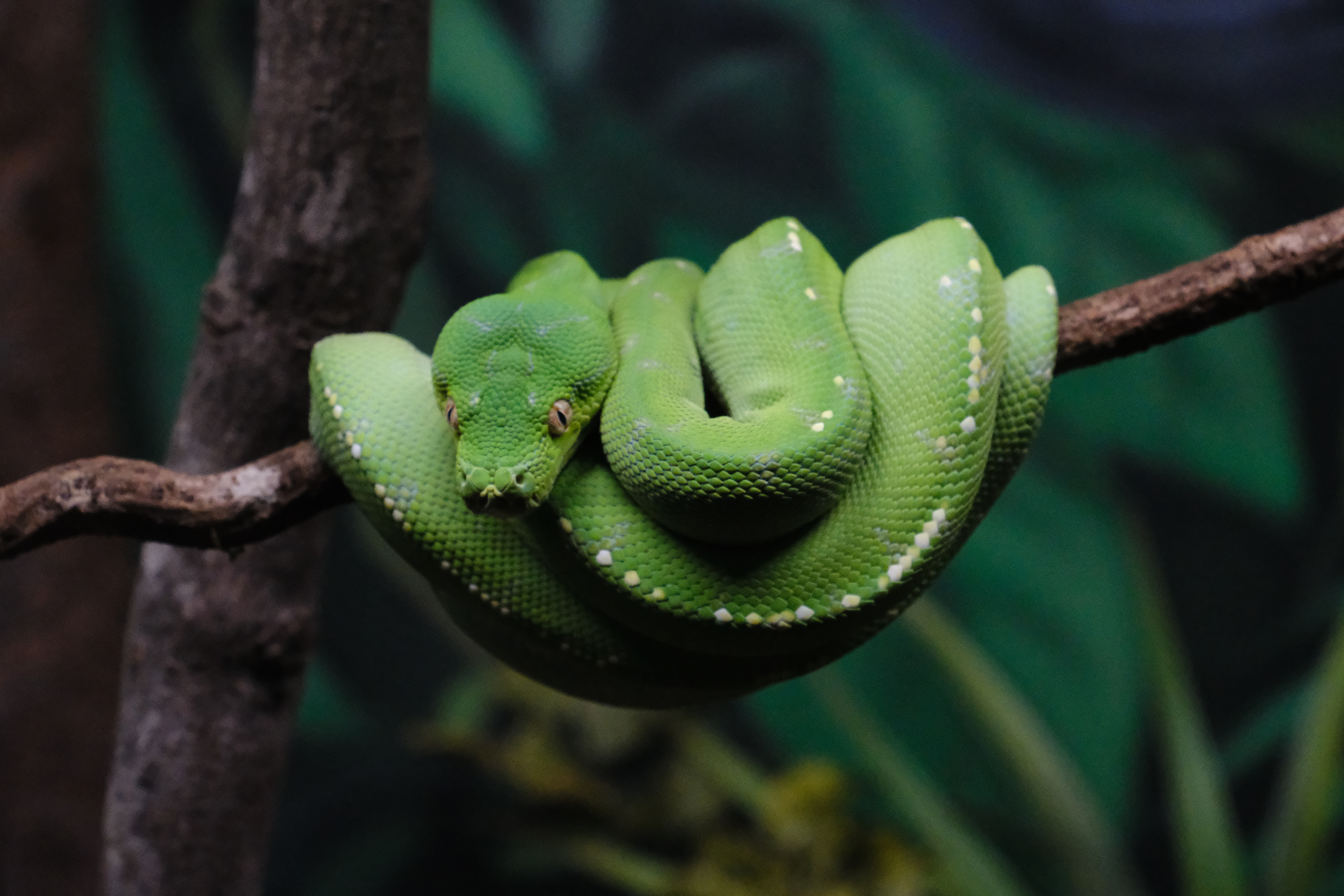 Comments: These beautiful snakes are sometimes confused with Emerald Tree Boas. They look so similar due to evolving under similar ecological pressures, but are not in any way related to each other. You can generally tell the difference between them by the size of the scales on their heads and the position of the heat pit on their lips. The Emerald Tree Boa, unlike the egg laying Green Tree Python, gives birth to live young.