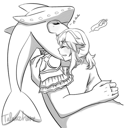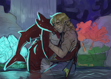 #fanart #fish #hugging #link #prince #sad #shark #sidon #zelda #botw #zeldafranchise #botwlink #botwfanart #botwsidon