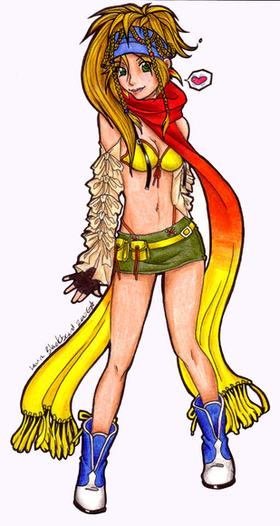 I love Rikku! This is very detailed and very well colored. I love how her scarf came out even though it could've been colored better. You really are getting better.