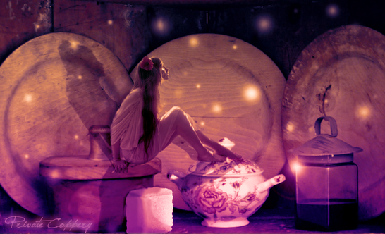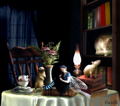 Teatime. My second attempt. Topaz labs is the best. A faerie enjoying teatime and her pet mouse.Stocks used