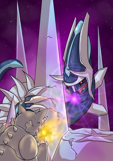 Ou yeah! Pink godzilla versus rock godzilla! This is gonna be the most epic battle ever!I know I should be doing everything else but this but I had to draw something new! So I decided to take a part of #PokemonDaily 's contest where you have to draw two pokemon battling. The pokemon are chosen randomly and I got palkia and rhyperior which was nice. I really started to like rhyperior while making this.
