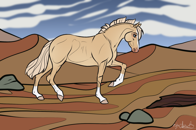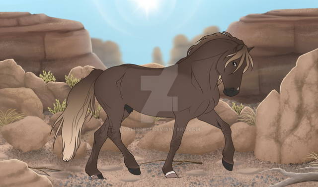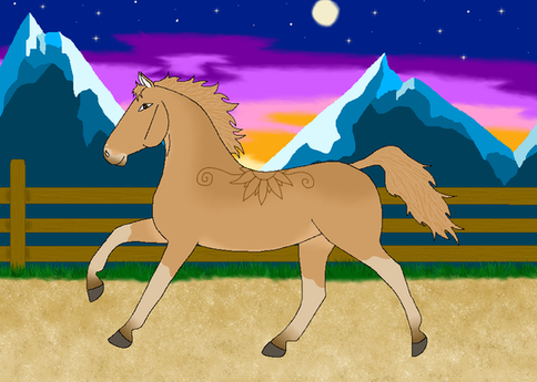 Personality: This stallion is pretty much bomb-proof and is known to be quite brave around threats. Is not one to easily get sidetracked and will stick to a task till his rider gets him to stop. Is a loyal companion to his riders, especially Eira. Does have a bad habit of acting a bit dominant around other studs though. Quite intelligent to the point that he also has a habit of opening his stall door to let himself out sometimes. When around Eira or other children he is quite affectionate and will not be bothered by ear or hair pulling.