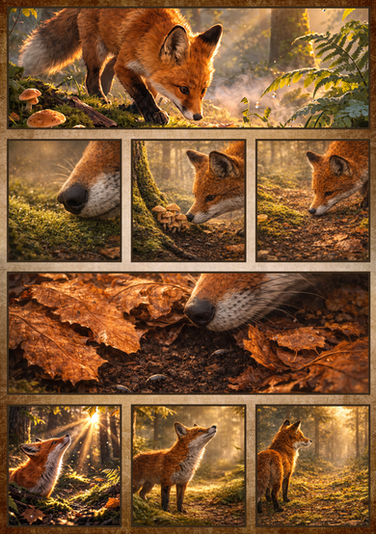 my husband came up with some stories so I'm going to share. The top right on this one is an abandoned dog who's frozen to the bone and won't give up. Just beyond the next trees is a cabin with a lonely old lady who will adopt him.