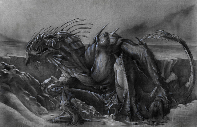 Oh... and a nice "little" dragon is under construction :3 Just finished the line art ^^ (hell it was not easy oO)